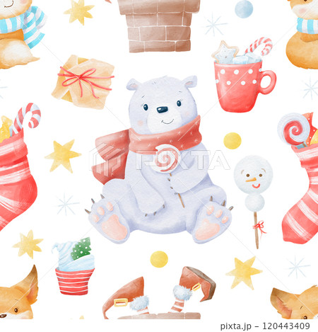 Watercolor Christmas seamless pattern winter background. Can be used for wrapping paper, textile, wallpaper, cards.