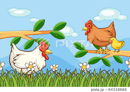 Scene with chickens in the garden