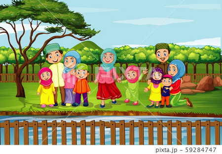 Scene with many people in the park