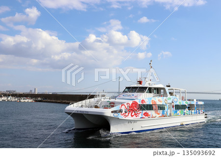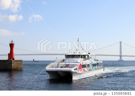 明石港から出港する まりん・あわじ(兵庫県 明石市 明石海峡)
