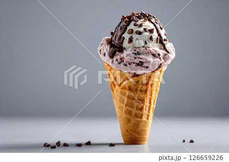 An ice cream in waffle cone
