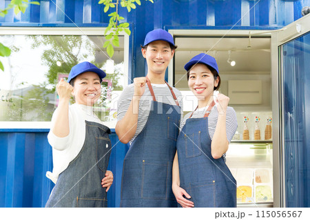笑顔で視線を向けるアイスクリームの販売スタッフ