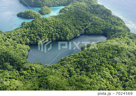 空から見たジェリーフィッシュレイク(パラオ共和国)