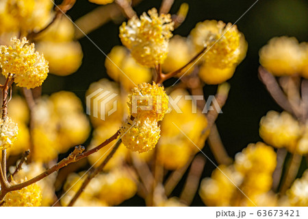 樹皮は和紙の原料になるミツマタの開花が近い画像