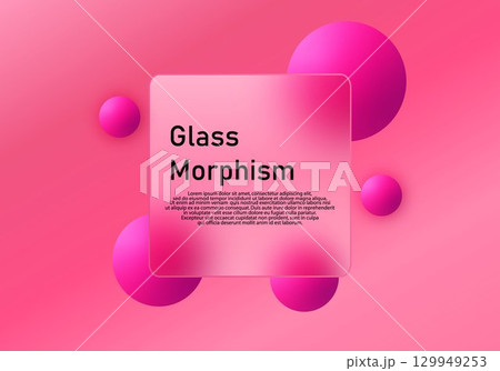 Glass morphism effect on a pink 3D background with spheres. Eps 10