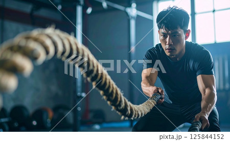 Rower arms in synchronized motion, paddling on simulator, strength flexibility and sport crew goal