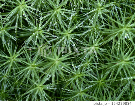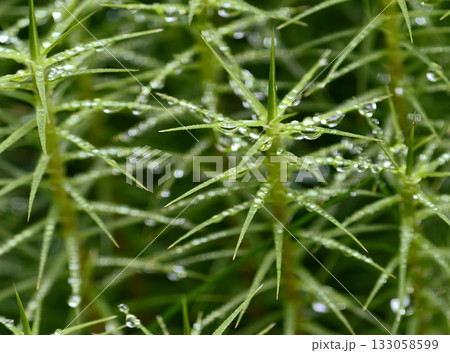detailed moss with shimmering drops, closeup of vibrant moss with dew drops and tranquil background