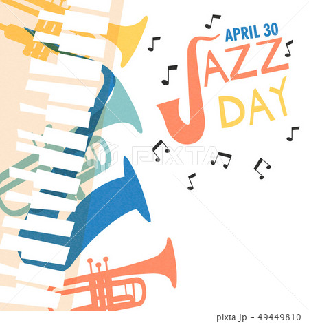 Jazz Day poster of colorful music band instruments
