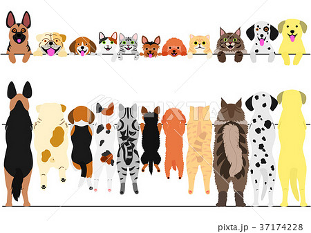 犬と猫のボーダー 小型犬と大型犬と猫 全身 前後セット