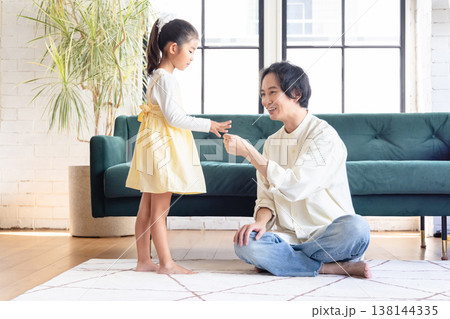 リビングでくつろぐ親子