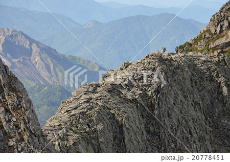 長野県松本市の日本アルプスにある日本百名山の夏季奥穂高岳からジャンダルムに向かう馬の背