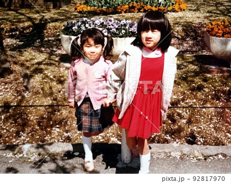 昭和50年代 屋外で記念撮影をする仲良し姉妹