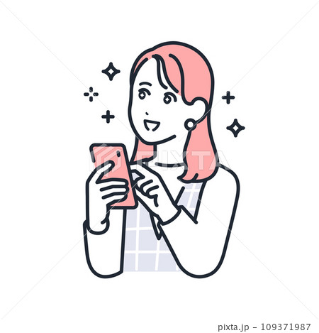 スマートフォンを持って期待するおしゃれな若い女性のシンプルなベクターイラスト素材