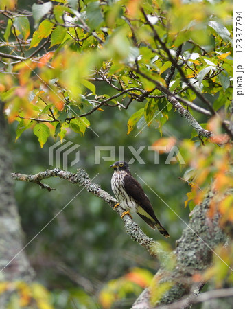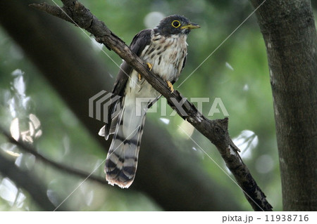 ジュウイチの成鳥 正面姿 枝に止まっています