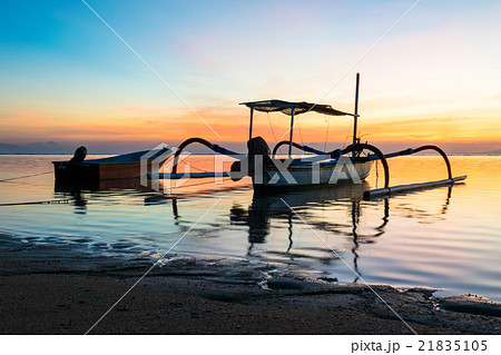 バリ島 サヌール海岸 ジュクン jukung 夜明け
