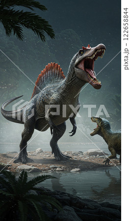 ジュラ紀の大自然で生きるスピノサウルス