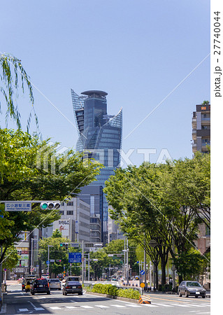 名古屋・伏見・都市風景 広小路通り 朝日新聞名古屋本社付近から、モード学園スパイラルタワーズを望む