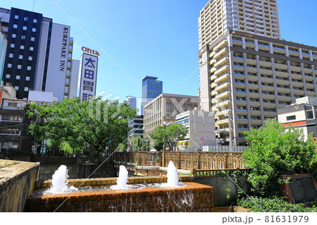 名古屋市納屋橋都市風景 堀川と納屋橋ゆめ広場
