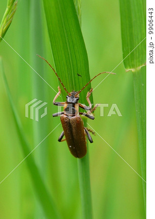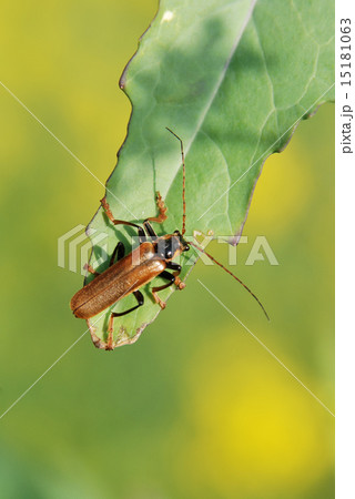 葉に止まるジョウカイボン科キンイロジョウカイ