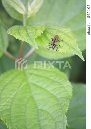 葉に止まるジョウカイボン科ムネアカクロジョウカイ