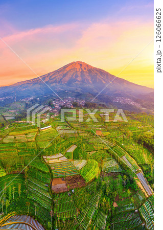 Scenic of Mount Sumbing at sunrise, Central Java, Indonesia.