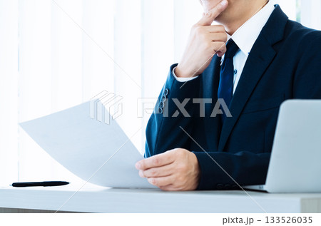 キャリアパス、転職について考える男性ビジネスマンイメージイラスト