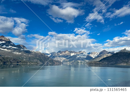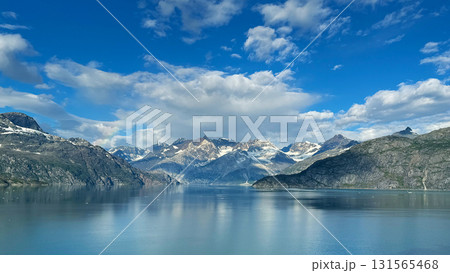 ジョンズホプキンス海峡の山々と氷河、グレイシャーベイ国立公園、世界遺産、2025年8月下旬撮影