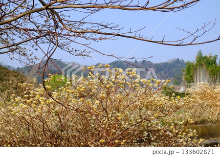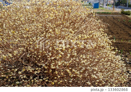 畑に咲く満開のミツマタ 【相模原市津久井 3月】