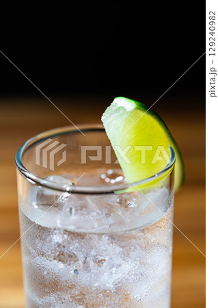 【カクテル素材】氷の入ったグラスに注がれた美味しそうなジントニック【ドリンク素材】