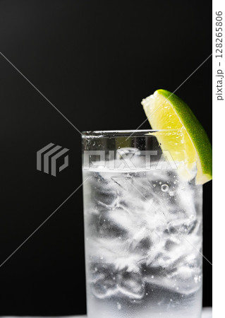 【カクテル素材】氷の入ったグラスに注がれた美味しそうなジントニック・黒バック【ドリンク素材】