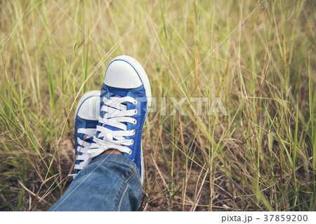 Blue sneaker, Pretty woman wear jeans blue sneaker