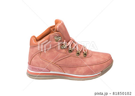 female pastel pink shoe, winter sport shoes, on a white background, isolate