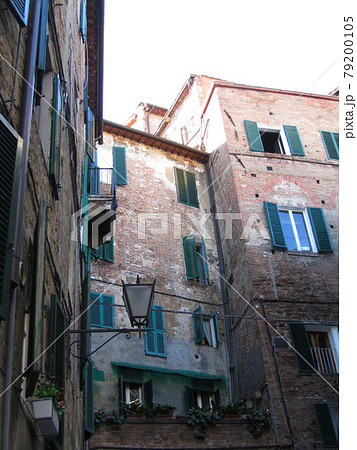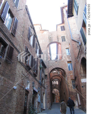 イタリア/シエナ アーチの美しいレンガの建物街並み