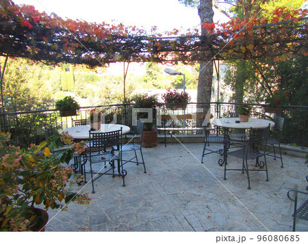 イタリア シエナ 紅葉する秋のカフェ テーブル