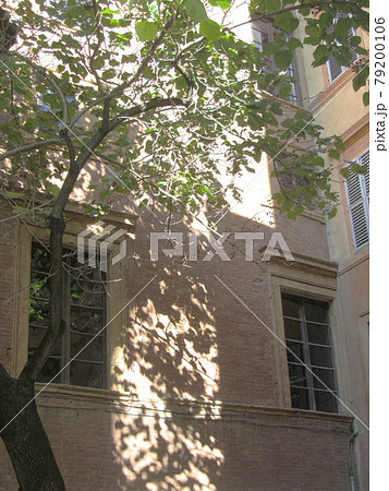 イタリア/シエナ 煉瓦造りの壁に映る木陰