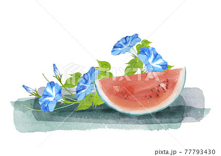 スイカと朝顔の水彩画