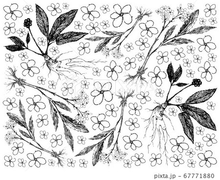 Hand Drawn Background of Valerian and Ginseng