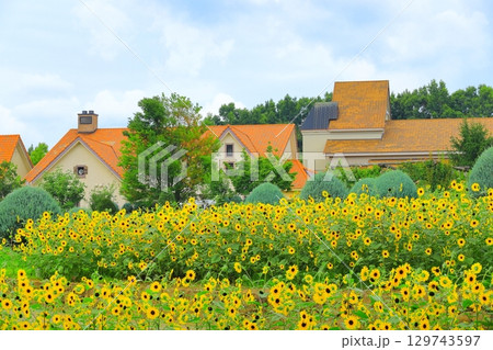 スイス村のひまわりの花