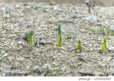 春 芽が出たスイセンの球根