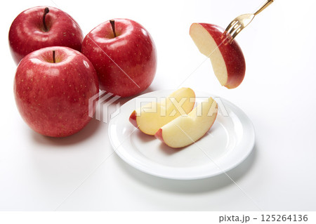 赤いりんごの手描き水彩イラストセット_半分にカットしたりんご_新鮮なフルーツ
