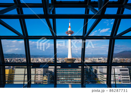 京都駅の空中経路から見る京都タワー