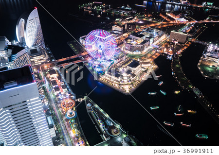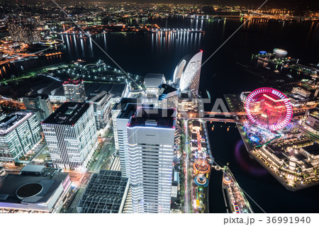 横浜市、ランドマークタワーからの夜景(コスモワールド方面)