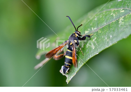 スズメバチに擬態するガ。コシアカスカシバ。キイロスズメバチ似。