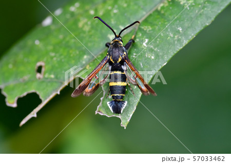 蜂に擬態する蛾ヒメアトスカシバのオス01