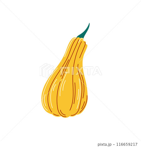 Colorful, yellow green pumpkin. Hand drawn flat style Autumn Harvest Thanksgiving halloween
