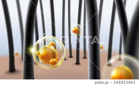 Hair protect care cosmetic technology 3D concept. Hair follicles structure repair shampoo salon