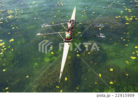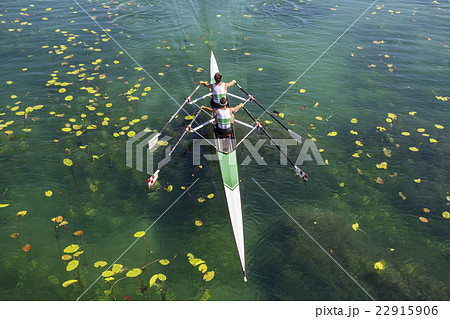 Two scull rowing competitor, rowing race two rower