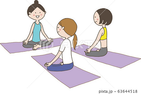 スカ・アーサナ(安楽座のポーズ)のヨガをする3人の女性