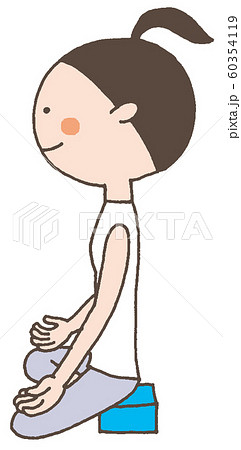 スカ・アーサナ(安楽座のポーズ)のヨガをするおだんごヘアの女性