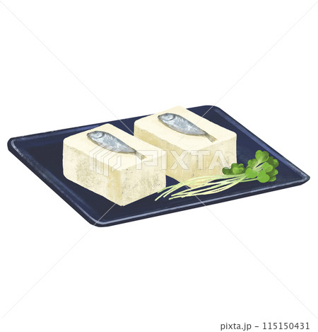お皿に盛りつけられているスクガラス豆腐のイメージイラスト